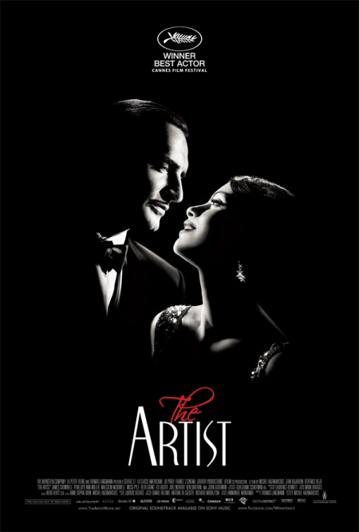 The Artist is perhaps less concerned with saluting the pioneers of film than it is with showing audiences a good time, something it does quite successfully. Told largely in the language of silent films, it does have a few jokes that play to the modern audience’s expectations of soundtracks. They are far too much fun to spoil, but I’ll mention the opening sequence, which takes place at the premiere of George Valentin’s (Jean Dujardin) latest drama. The hero is being questioned by the enemy agents who have captured him: “I will never talk!” he assures them in the intertitle. (The gag is repeated later when his wife tells him, “We have to talk.”) As the screening ends, we see Valentin behind the screen listening for the audience’s reaction. To us it appears non-existent, until a shot of the audience reveals what the character could hear – they are all applauding wildly.